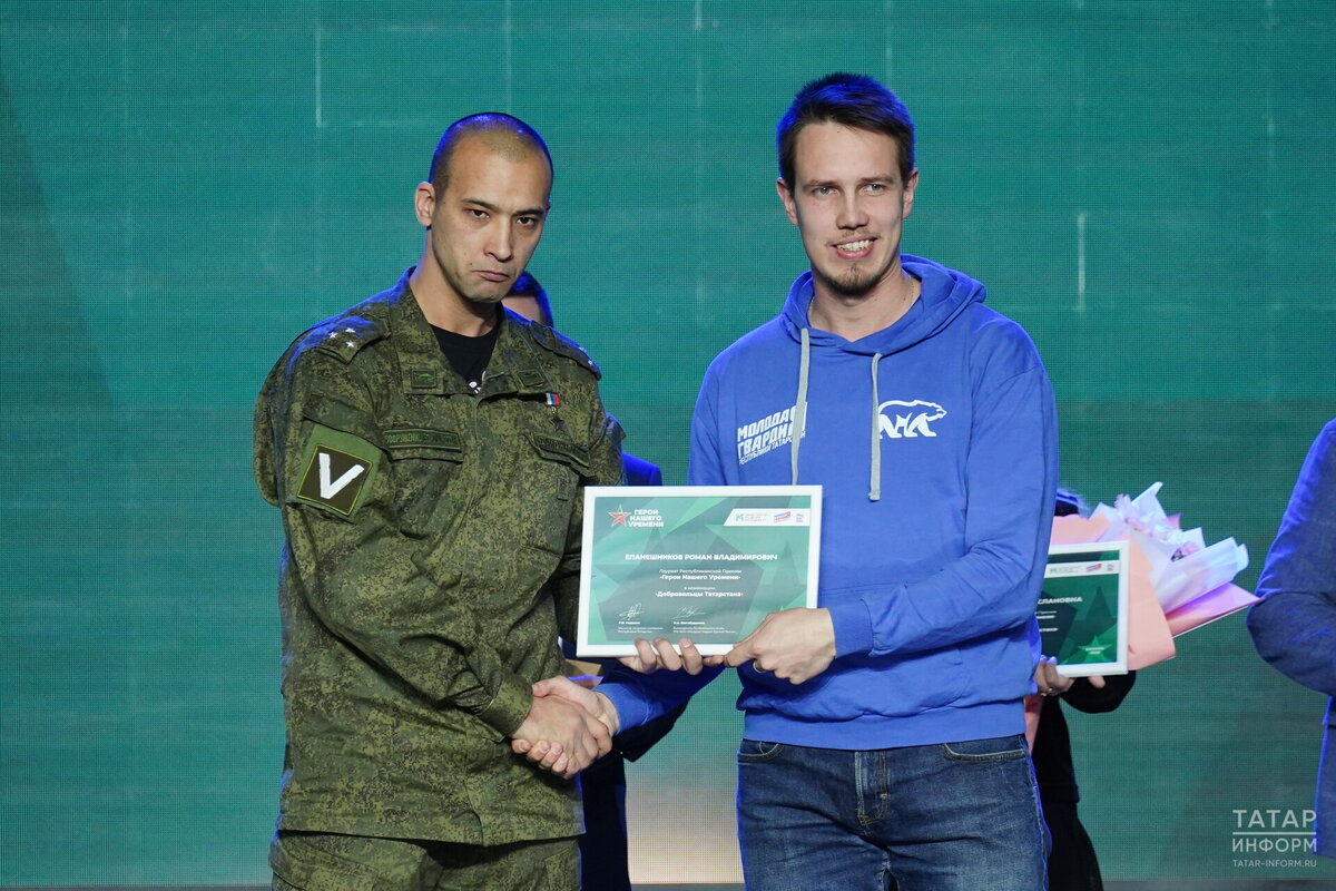 Накануне в Казани прошла церемония награждения лауреатов республиканской премии «Герой нашего времени» и «Форума маленьких героев». Среди них татарстанские врачи, ученые, сотрудники полиции, волонтеры, а также юные жители республики. В числе победителей оказались и елабужане: куратор штаба гуманитарной и волонтерской помощи "Планета добра" Тансылу Хуснуллина и куратор добровольческого центра «Доброволец» Роман Епанешников. Тансылу Хуснуллина является социальным координатором филиала фонда «Защитники Отечества» по РТ в Елабуге и возглавляет региональную общественную организацию молодежи и детей-инвалидов «Планета добра». Они активно оказывают помощь нашим бойцам, госпиталям. «Планета добра» – это не только пункт сбора гуманитарной помощи, но и место плетения маскировочных сетей, изготовления тактических носилок, окопных свечей, сухого борща, сухого душа и многого другого. Роман Епанешников организовал в Елабуге гуманитарный штаб по сбору вещей для жителей Донбасса и наших бойцов. В рамк