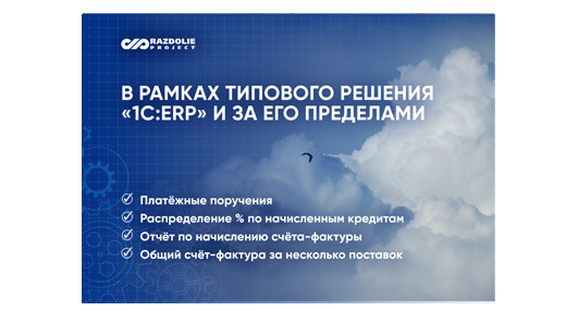 – Типовой инструмент начисления в «1С:ERP» прекрасно распределяет проценты на все направления как обычные расходы. Любые проценты, которые мы начислили, могут быть распределены статьёй расходов на любой счёт: ERP-система даёт возможность направлять расходы куда угодно. Важно выбрать правильную статью. По запросу мы настраиваем автоматическое распределение таких процентов, главное, чтобы было понимание, по каким принципам должно происходить распределение.