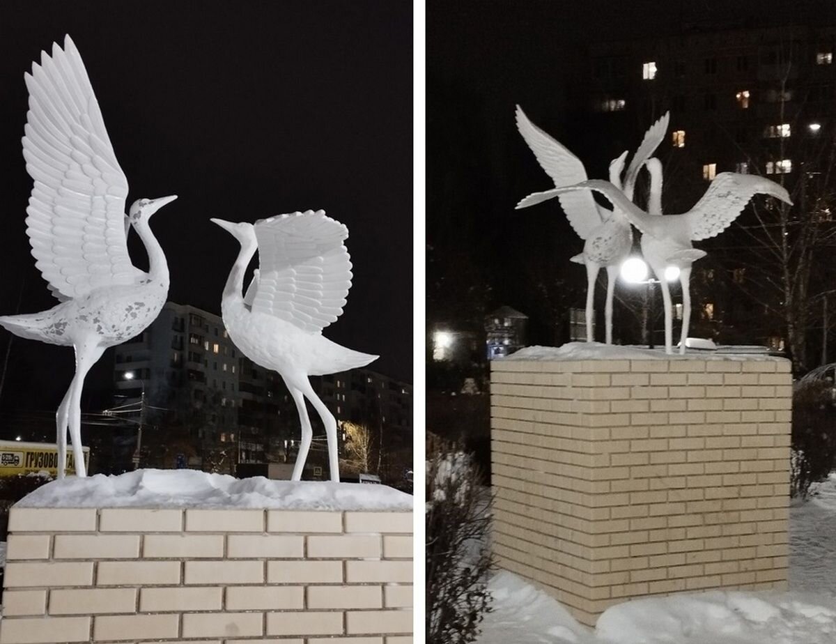 Фотофакт: в Рязани с новых скульптур птиц в сквере "Белых журавлей" начала осыпаться краска