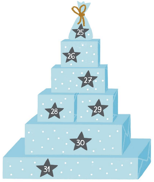 3. Елка из подарков. Можно собрать елку из самих подарков. Ребенок будет открывать их, начиная с верхушки. Внутрь коробок необязательно класть что-то большое и ценное: это могут быть самые обычные предметы, которые скрасят ожидание праздника.