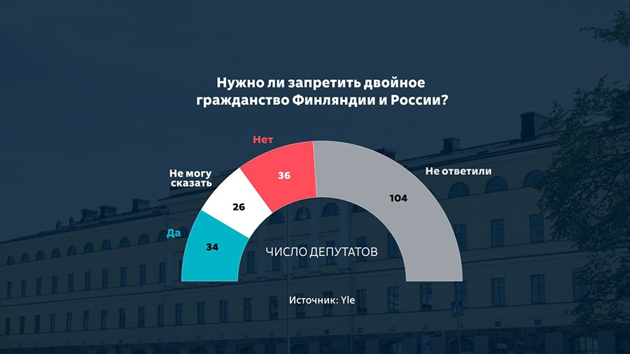 Издание Yle провело опрос, в котором приняли участие 96 из двухсот депутатов парламента Финляндии. 34 выступили за отмену российского-финского гражданства, среди них больше всего представителей «Истинных финнов» и «Коалиционной партии». 36 против этой инициативы, 26 затруднились с ответом.