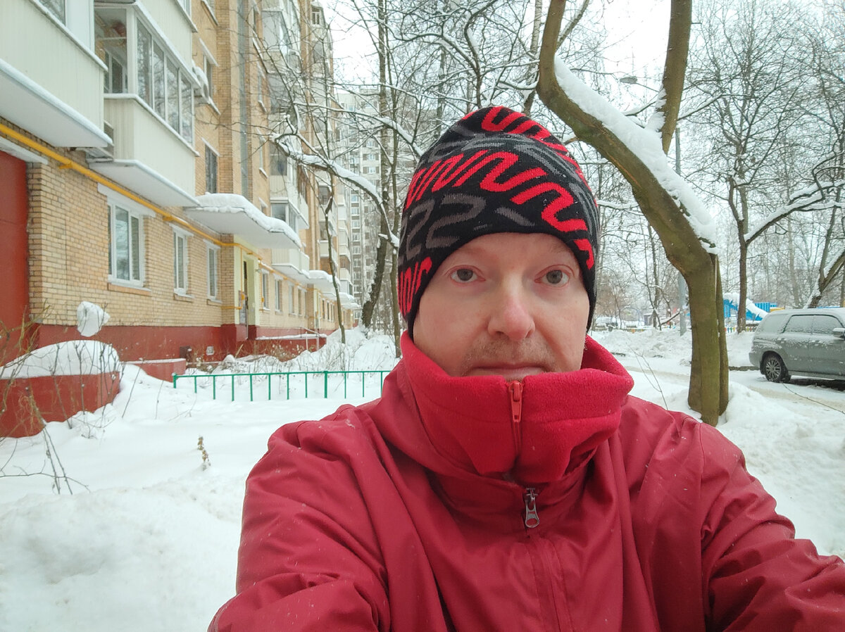 Приветствую и извиняюсь! Снова на кислых щщах😕 Причина все та же - идущий снег и не чищенные дороги. Всё же выбираюсь на улицу, но далеко уйти не получается. Для получения как можно бо́льшей нагрузки на ограниченном пространстве нацепляю утяжелители. Вчера было так же - в утяжелителях и у подъезда. Снова надолго не прощаюсь. Грусть - не грусть, а заниматься буду. Будьте здоровы!