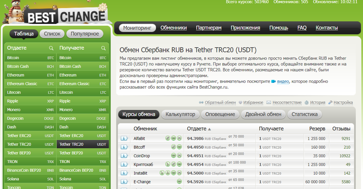 Популярный агрегатор обменников - bestchange.ru