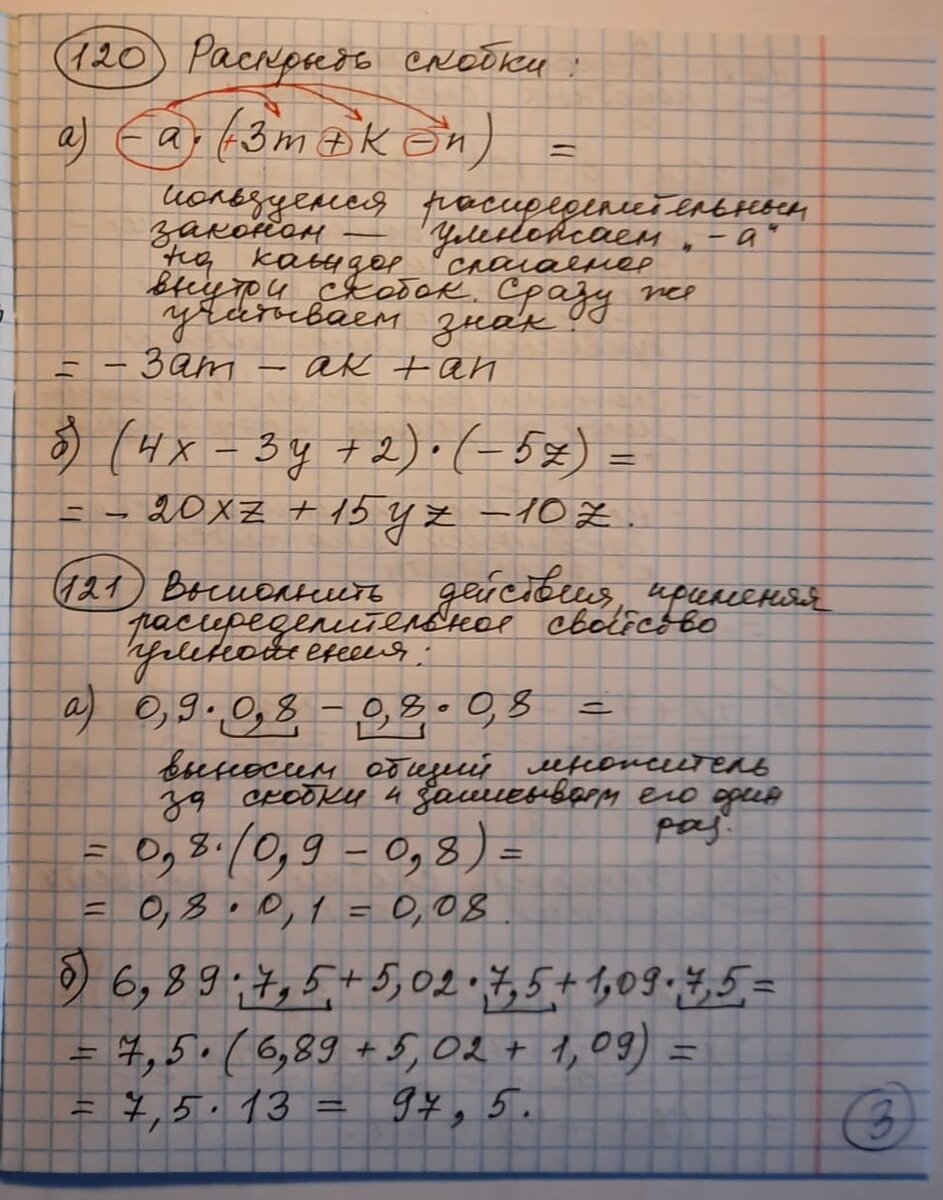 Решение некоторых упражнений тем курса математики 6 класса. Раскрытие скобок. Распределительный закон.
