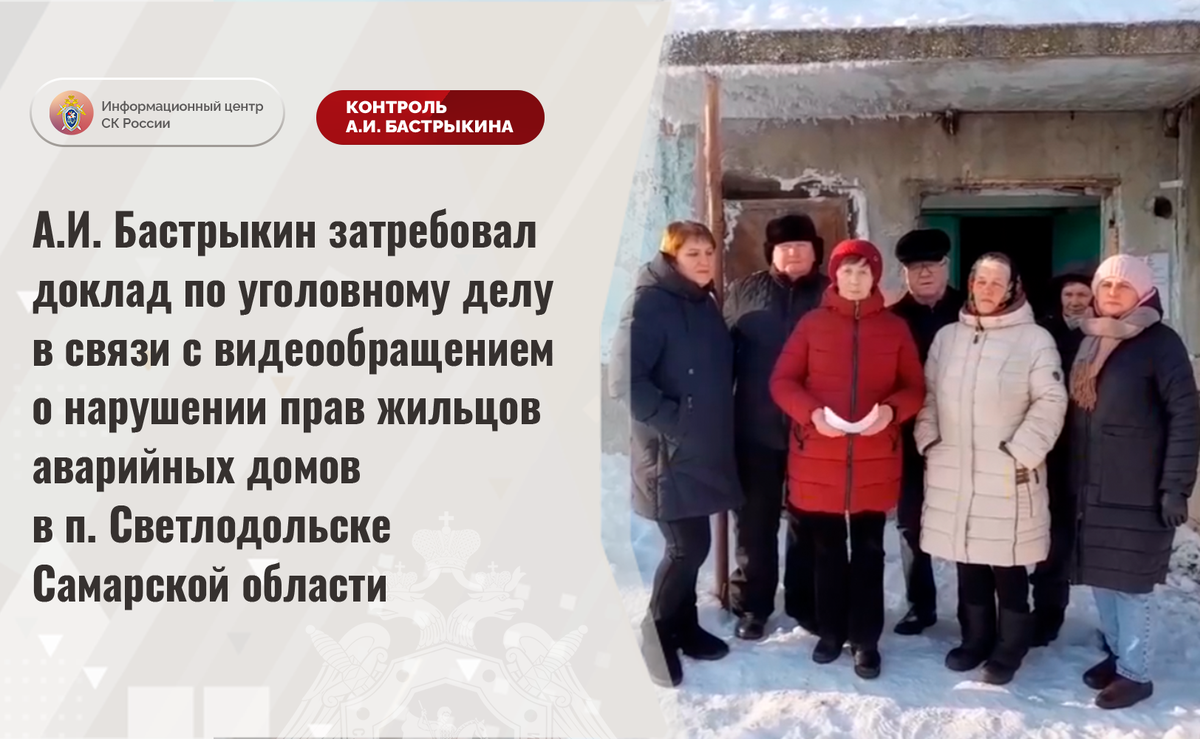А.И. Бастрыкин затребовал доклад по уголовному делу в связи с видеообращением о нарушении прав жильцов аварийных домов в п. Светлодольске Самарской области