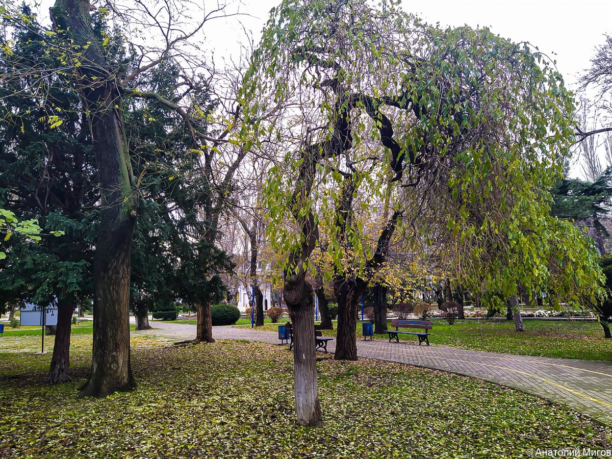 Нет-нет, не волнуйтесь пожалуйста, с морем в Феодосии всё в порядке, никуда оно не делось. Просто, обычно, когда мы с Леной приезжаем в Фео, то, как правило, непременно идём на берег залива. Но сегодня у нас другой маршрут. Мы пойдем по одной из лучших улиц города - имени Горького, бывшей Итальянской. Своё начало улица Горького берет от проспекта Айвазовского, который плавно в неё переходит. Главная достопримечательность - башня святого Константина, построенная в конце 14 в. Это последний сохранившийся в городе остаток крепостной стены, окружавшей Феодосию. Есть ещё кусочек Генуэзской крепости на Карантине, но там уже не город, а окраина. Башня разрушается. С каждым годом выглядит всё хуже и хуже. Несколько лет назад её оградили забором, потому что приближаться стало опасно, и кое-как укрепили самые проблемные места. Но это как мёртвому припарки. Башне требуется серьёзная реконструкция. Сейчас середина декабря, но зимы здесь ещё не было. Трава зелёная, много цветов. Цветы живые. В осн