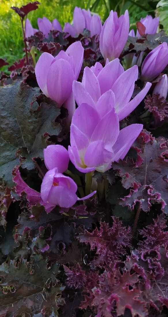 Гейхеры так не цветут. Это безвременники, нахально затесавшиеся в кустики гейхер.