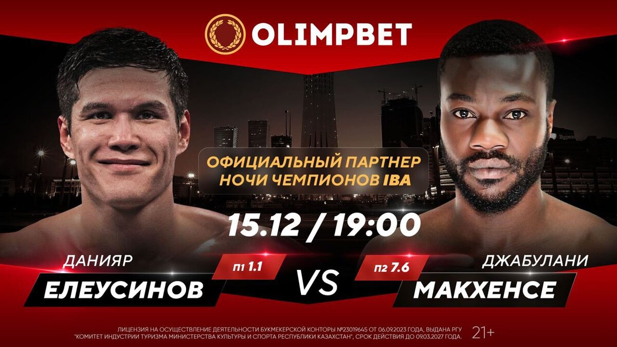 Казахстан впервые встречает вечер бокса престижной серии «Ночь чемпионов IBA». Что организаторы яркого спортивного шоу готовят для публики в Астане? 15 декабря в казахстанской столице состоится одно из ярчайших событий в мире бокса – «Ночь чемпионов IBA». Это серия турниров, организованная Международной Ассоциацией бокса. События в рамках «Ночи чемпионов IBA» объединяют выдающихся мировых спортсменов, которые соревнуются по правилам профессионального бокса. Нашу страну будут представлять топовые казахстанские бойцы – чемпионы и призеры чемпионатов мира и Азии. В главном событии вечера на ринг выйдет триумфатор Олимпиады-2016 Данияр Елеусинов. Противостоять ему будет Джабулани Макхенсе из Южно-Африканской Республики. Судя по букмекерским коэффициентам, у гостя очень мало шансов на победу: П1 – 1.1, П2 – 7.6. Также против наших боксеров сразятся соперники из России, Нидерландов, Мексики, Кубы, Сербии и Узбекистана. Всего запланировано восемь поединков, состоящие из шести раундов по три м