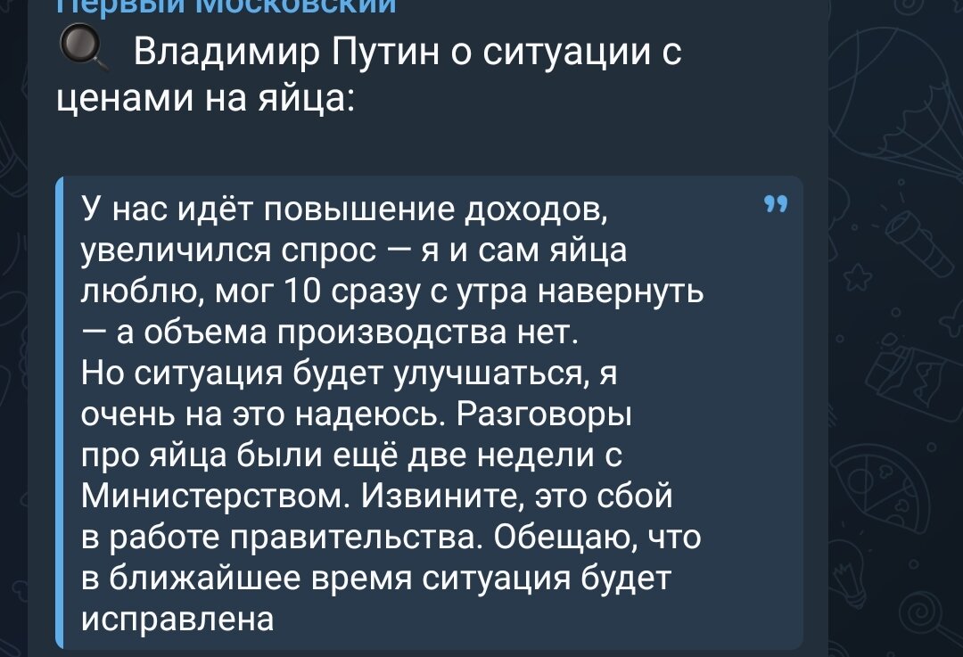 "Идёт повышение доходов, вот и цены выросли", - ответил Путин про цены на яйца. Почему мы не заметили, что доходы повысились