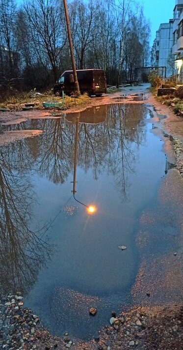 Сделали подлость на долгие годы. Им жить надо, а другим – нет. И потекла вода, как и предсказывали. Под 36-й. Разлилась вдоль 35-го. А вступать в ППМИ жители дома №35 не хотят. Дать шанс администрации сделать новый проект этой территории с учётом отвода воды от «нижней точки», от въезда в порт, – не хотят. А иного для придомовой территории законы России не предусматривают. Жителям ругать власть в интернете проще. Люди, которые вынуждены ежедневно пробираться по этой луже из дома и обратно, пишут жалобы в администрацию.