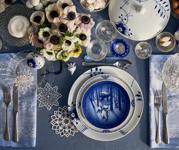 Датская королевская фарфоровая фабрика Royal Copenhagen, которая была основана в 1775 году, сохраняет традиции прошлого и до сих пор выпускает традиционный художественный фарфор с ручной росписью. Одна из традиций фабрики, начало которой было положено в 1895 году – это выпуск традиционных рождественских тарелок Royal Copenhagen и Bing & Grøndah. Сюжет каждой тарелки связан с датской историей и культурой. Идея тематических тарелок, возникла на выставке промышленности, сельского хозяйства и искусств Северных стран 1888 года в Копенгагене. Грандиозное мероприятие собрало 1,3 миллиона гостей в стране с населением всего 2 миллиона человек. Датский королевский фарфоровый завод в рамках своей экспозиции на ярмарке создал первую серию тематических тарелок. Среди гостей выставки были члены королевской семьи. Кронпринцесса Дании Луиза приобрела одну из них на память об этом грандиозном событии. Другие посетители последовали ее примеру с таким энтузиазмом, что заводу пришлось выпустить дополнител