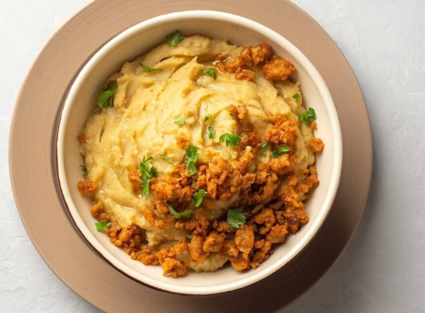 Гороховая каша с мясом 📖 Ингредиенты: - Горох колотый - 250 г. - Лук - 1 шт. - Морковь - 1 шт. - Соль - 1 ч. л. - Чеснок - 2-3 зубчика - Вода - 1 л. Для мяса: - Лук - 1 шт. - Фарш - 450 г. - Соль, перец, специи - по вкусу - Растительное масло - 2 ст. л. 🧑🏻🍳 Приготовление: 1. Горох промойте. Лук и морковь нарежьте кусочками. Чеснок измельчите. Сложите в кастрюлю, посолите. 2. Залейте водой, доведите до кипения и снимите пену. Варите на небольшом огне 45–60 минут. 3. Обжарьте лук в сковороде с маслом. Закиньте фарш и перемешайте, разбивая крупные комки лопаткой. Добавьте паприку, куркуму и имбирь. 4. Снимите горох с огня, добавьте масло и взбейте погружным блендером. 5. Подавайте гороховую кашу вместе с обжаренным мясом.