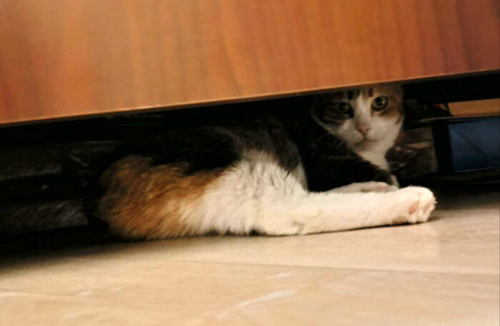 Любящие заботливые руки ищет подкроватный монстр с повадками таракана: живёт под кроватью, ночами там чавкает, урчит и ворчит; вылазит только при выключенном свете, при виде человека убегает под кровать. Идеальный вариант для одинокого интроверта - если хочется, чтобы дома был ещё кто-то живой, но на социальные взаимодействия нет сил. Вообще-то, её зовут Зайка, и, если вы дочитали до этого места, можем поговорить серьёзно. Зайке около трёх лет, выросла во дворе Питерской многоэтажки, людей и других кошек сторонилась - скорее всего, её обижали. Была спасена с улицы после серьёзной травмы хвостика (его пришлось ампутировать полностью). Также стерилизована и привита. Около года прожила на передержке, где было ещё несколько животных, и даже подружилась там с одним котиком. Но в этой семье случилось несчастье с собственным любимцем, и Зайку попросили забрать. Сейчас она живёт под кроватью у людей, которые тоже, к сожалению, не готовы любить её и стать ей настоящей семьёй. Зайка - довольно к
