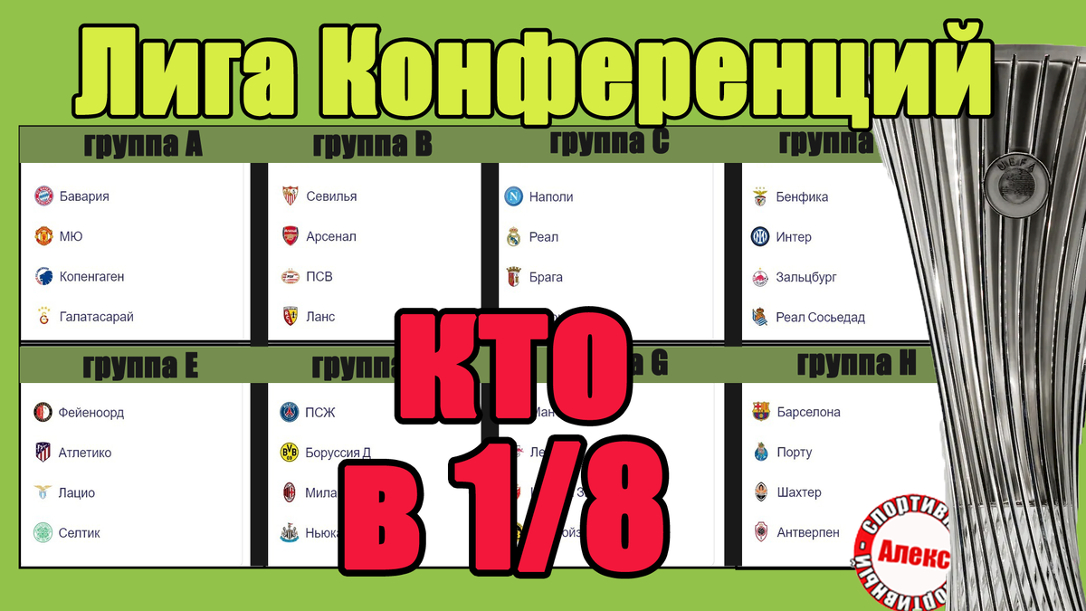 Привет, друзья. Вы на канале «Алекс Спортивный». Этой ночью определились все участники плей-офф Лиги Конференций. Подводим итоги. Группа А. Лилль разгромил Клаксвик 3:0. Фарерцы на 85-й и 90-й минутах получили по удалению. В первом круге Лилль не сумел обыграть Клаксвик - 0:0. На данный момент французский клуб не уступает 14 игр подряд во всех турнирах. Слован – Олимпия 1:2. Итоговая таблица. Лилль и Слован выходят в плей-офф. Олимпия и Клаксвик проигрывают. . Группа В. Маккаби Тель-Авив обыграл Гент 3:1. Заря разгромила Брейдаблик 4:0. К этой игре оба клуба подошли без побед в течении длительного времени. Заря выигрывает впервые за 10 матчей. Напомню, в первом круге Заря победила с минимальным счетом. Таблица. Маккаби Тель-Авив и Гент сыграют в плей-офф. Заря и Брейдаблик выбывают. . Группа С. Виктория – Астана 3:0. В октябре Астана уступила дома 1:2. Казахстанскому клубу достался сегодня сложный соперник, который не проигрывает 6 матчей. Динамо (Загреб) – Балканы 3:0. Итоговая таблиц