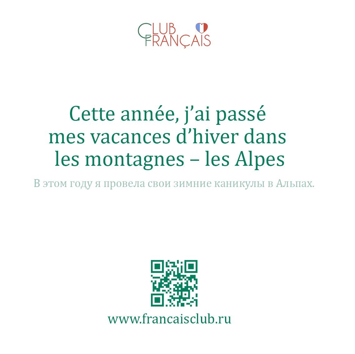 Друзья, желаю вам когда-нибудь сказать на французском, что в этом году вы проведете свои зимние каникулы в Альпах :)❔Кстати! Сможете записать эту фразу в разных временах: настоящем, прошедшем и будущем? ❄️ Сайт онлайн-школы Club Français