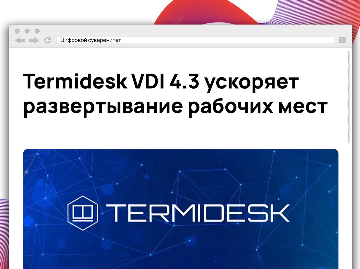 Компания «Увеон – Облачные технологии» объявляет о выпуске новой версии программного комплекса Termidesk VDI 4.3, предназначенного для создания инфраструктуры виртуальных рабочих мест. Продукт востребован среди организаций любого масштаба, так как с его помощью можно легко выстроить удобную и безопасную дистанционную работу персонала. В новой версии Termidesk VDI появился установочный модуль Virtual Appliance (VA). Это образ виртуальной машины с предварительно установленной и настроенной ОС Astra Linux 1.7.5, программными пакетами из состава Termidesk-VDI и рядом дополнительных приложений, необходимых для работы Termidesk. Благодаря VA существенно сокращается время развертывания и ввода в эксплуатацию Termidesk VDI, а количество действий для настройки системы сводится к минимуму. При этом каждый заказчик может инсталлировать VA именно с тем набором функций, который для него актуален.