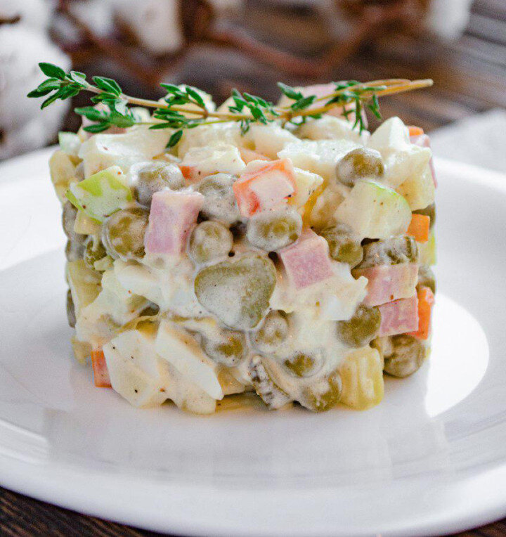 Люди делятся на два типа: на тех, кто называет этот салат зимним, и тех, кто называет его оливье. Второй после елки символ Нового года для россиян и просто популярнейший салат в странах бывшего СССР. Любопытно, что название салат получил в честь повара из одного французского ресторана в Москве Люсьена Оливье еще в 60-е годы. В других странах его называют русским или гусарским.