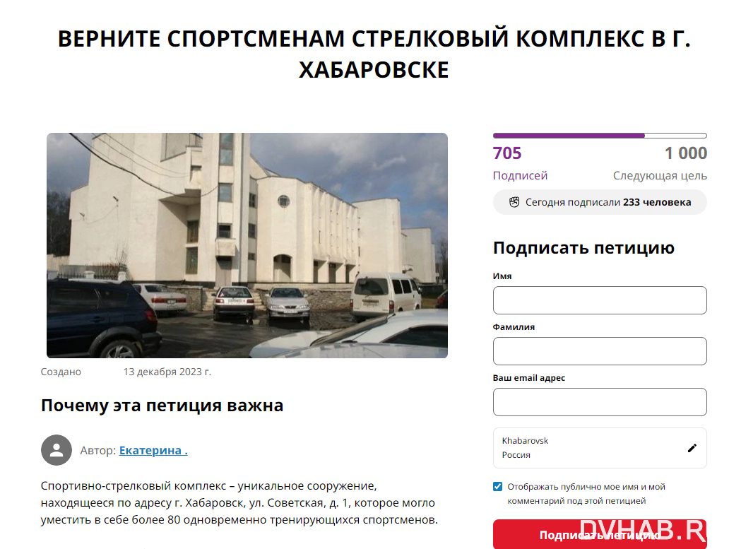 Вернуть здание стрелкового комплекса требуют хабаровские спортсмены