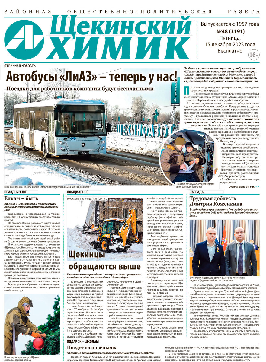 — на работу — с комфортом: «Щекиноазот» закупил новые автобусы для бесплатной доставки персонала;
