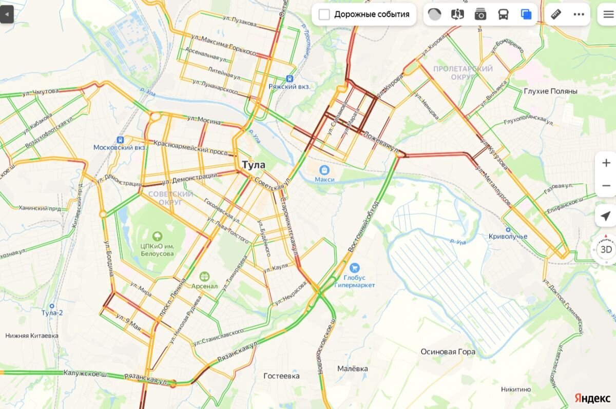 Утром 15 декабря, как впрочем и вечером 14 декабря Тулу сковали огромные пробки. Из-за атмосферного циклона «Ваня», обрушившегося на центральные регионы России, в Тульской области не прекращаются обильные снегопады и метели. Общественный транспорт в областном центре работает с перебоями, многие улицы и магистрали города окрашены в красный и коричневый цвет. Наиболее серьезные проблемы наблюдаются на улице Степанова, улице Советской, улице Марата, улице Ложевой, Металлургов, Рязанской, Кирова, затруднено движение на проспекте Ленина, улице Болдина, Октябрьской на также на Щекинском, Веневском и Новомосковском шоссе. Улучшения погоды в ближайшие дни, синоптики, увы, не обещают. Так что сильные снегопады будут идти и в следующие 4 дня.