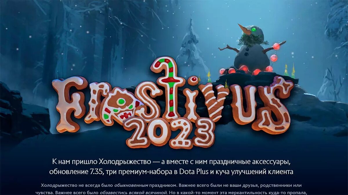 15 декабря 2023 года компания Valve установила патч 7.35 с геймплейными изменениями и долгожданным Холодрыжеством. До 11 января у игроков DOTA 2 есть возможность заполучить сундуки и чулки с подарками. Для участия в ивенте достаточно побеждать и повышать уровень духа Холодрыжества, получая закрытый сундук с 8 сетами и бонусные чулки со случайным содержимым в виде граффити, смайликов и наклеек. Дополнительно в пачте внедрили индикатор дальности башни, возможность отображения времени телепортации, иконки на мини-карте, улучшенные указатели способностей, описание предметов и отображение награды за уничтожение определенного крипа. Новость на сайте: https://topinator.ru/2038-v-dota-2-nachalos-holodryzhestvo-2023.html