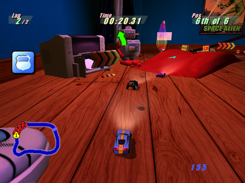 Аркадные гонки - относительно популярный жанр. Специфическим поджанром являются гонки на игрушечных машинках и наш сегодняшний герой относится именно к ним. Практически забытая гоночка, которая изначально была сделана и выпущена для консолей в 2003 году, а уж затем портирована для ПК-бояр (явно заметно хотя бы по тому, что мышку невозможно использовать), правда при переносе куда-то подевался мультиплеер или хотя бы кооператив, так что довольствоваться придётся только соревнованием с ИИ, что впрочем не особо расстраивает, учитывая известность игрушки. Итак, что тут есть: 12 любопытных карт, 16 видов машин, 2 режима и… куча веселья. Ревущие на всю мощь моторы под приятную музыку, постоянно меняющиеся местами машинки, резвящиеся на какой-нибудь кухне. Вот вам в корму влетел огненный заряд и авто подлетело, другой на джипе, пользуясь своей массой толкнул не успевшую набрать разгон гоночную машинку под откос и оп, вы на последнем месте с отставанием в пяток секунд. Всё? Нееет, пущенная в ну