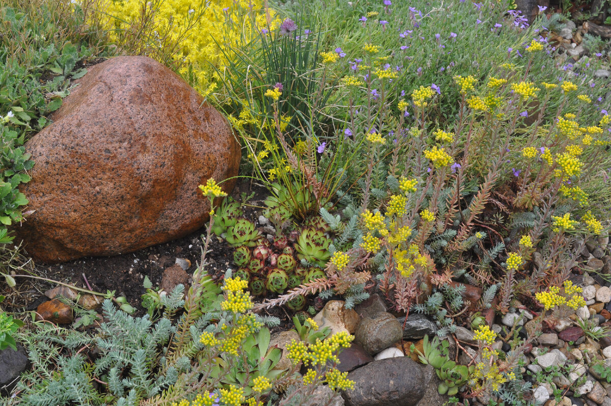 Очитки, пожалуй, самые непритязательные к погодным условиям растения. (А это качество в условиях наисамой средней полосы, где и разбит мой декоративный сад, является очень существенным его достоинством). Дождь-засуху, жару-мороз переносят стоически.