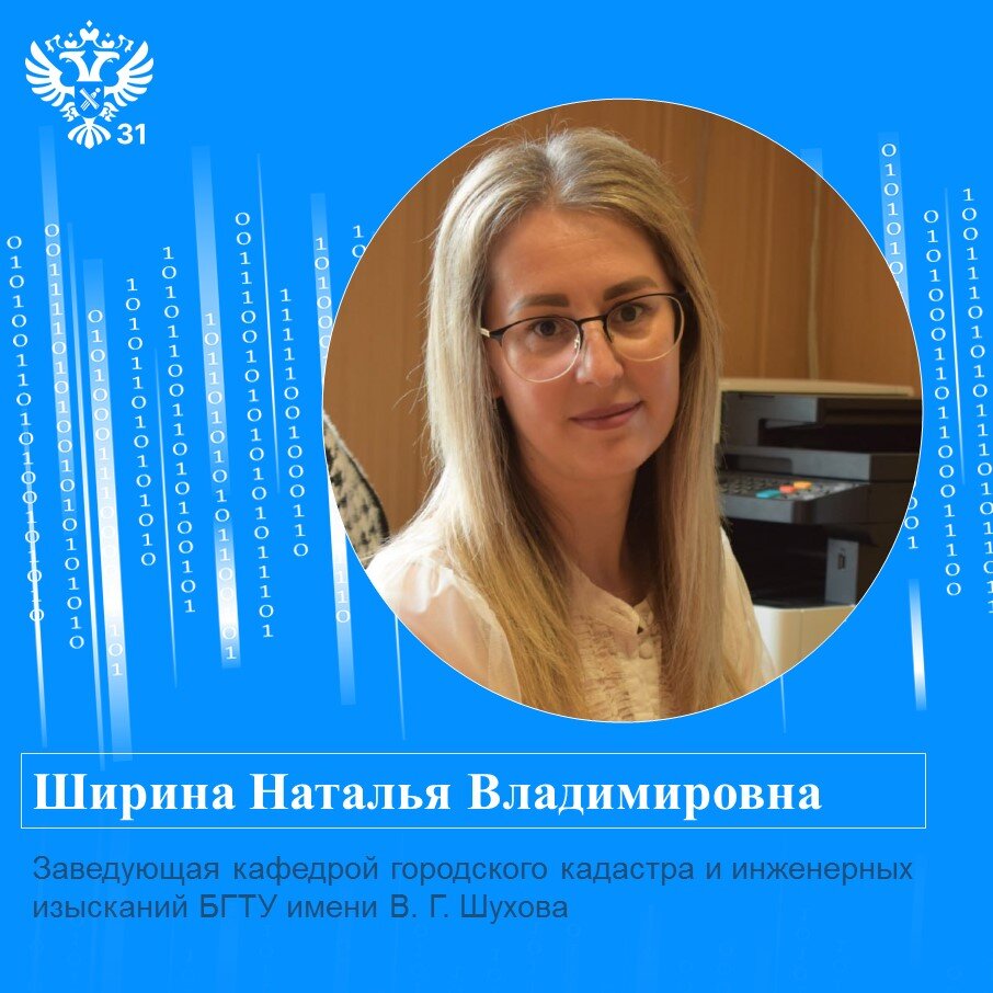 Сегодня в рамках рубрики #15летРосреестру заведующая кафедрой городского кадастра и инженерных изысканий БГТУ имени В. Г. Шухова Наталья Владимировна Ширина поздравляет региональное Управление с 15-летием: