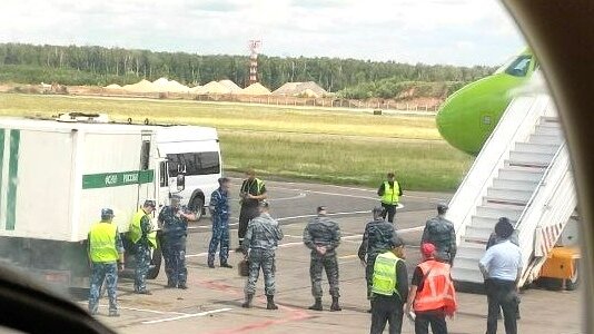 Вместо привычного пассажирского автобуса к трапу подъезжает автозак и несколько машин ФСИН. Открывается дверь грузовика, под лай собак выходит уголовник, двое конвойных ведут его вверх по трапу. Стюардессы вышли встречать честно’го бродягу, им положено. Мы со вторым стоим на трапе.