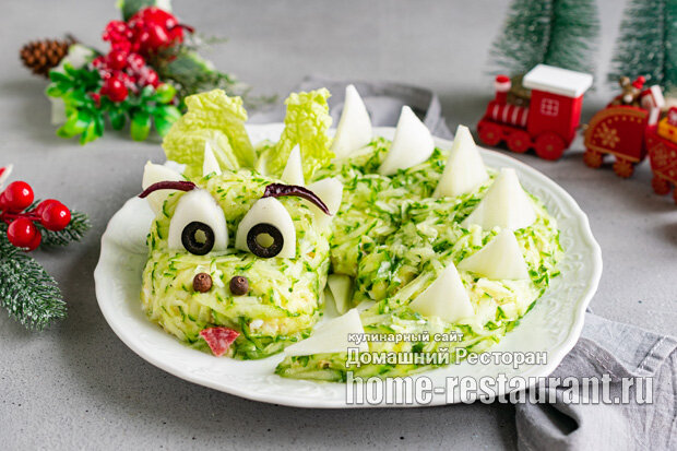 Праздничный салат в виде дракона обязательно должен быть на Новый Год 2024. Благодаря своему оригинальному виду этот салат порадует и взрослых, и детей. Он очень эффектно смотрится среди других блюд и привлекает к себе внимание. Благодаря своему составу салат получается сытным, вкусным и сочным. Все продукты хорошо сочетаются между собой, делая блюдо нежным и ароматным. Если у вас есть дети, попросите их помочь вам украсить салат. Уверена, им непременно понравится эта идея! Ингредиенты: Как готовить: https://home-restaurant.ru/blyuda-na-novyj-god/salat-drakon-na-novyj-god-2024/
