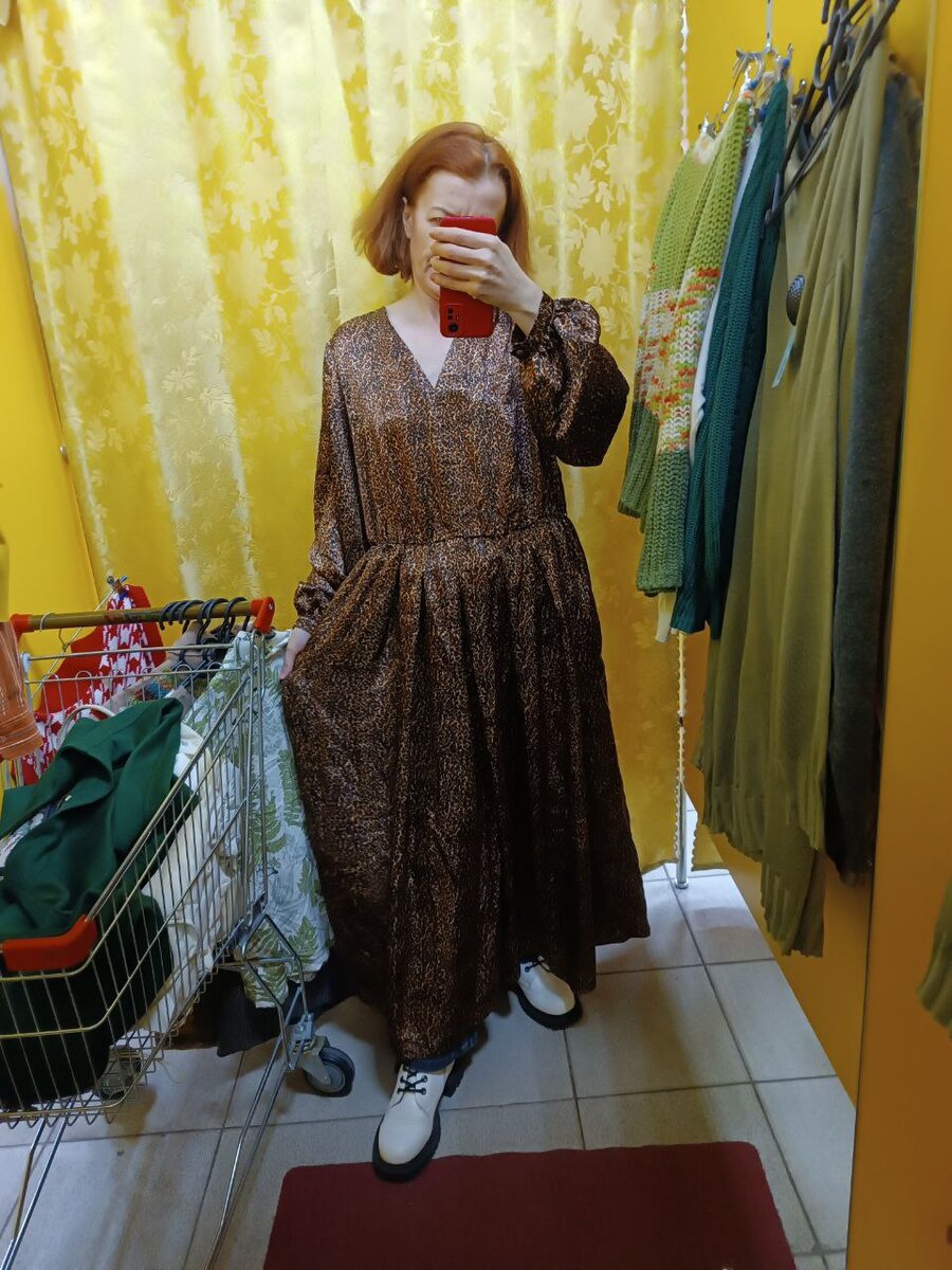 Привет всем! Это Анна. Ростов-на-Дону на связи. Показываю Вам мои находки и покупки в секонд-хендах моего города. Напоминаю, что цены указаны в фото, листаем галерею по каждой вещи. И мои извинения о качестве некоторых фото!!!Это рабочий момент и к сожалению не всегда получается отслеживать их четкость на месте! Спасибо за понимание! Примеряю разное: маленькое-большое, женское-мужское. Черного и серого почти нет в моих обзорах. В основном это яркие и насыщенные цвета, что я и люблю. Начну с платья макси. Полиэстер, цена как в магазине обычном. Отрезная талия. пояс потерялся. Большой размер. Блузка в стиле пижамы из вискозы с коротким рукавом. Хотела взять на лето. Но передумала. Помните такие пуговички? Теперь про шелка🔥🔥🔥 Первая блузка из Италии, наполовину почти из шелка. Качество супер, швы отменные, даже порядковый номер есть,но были непонятные загрязнения и немного не современный фасон. Пуговички оригинальные! И моя покупка. Шелковый балахон(очередной)). С пайетками на нижне