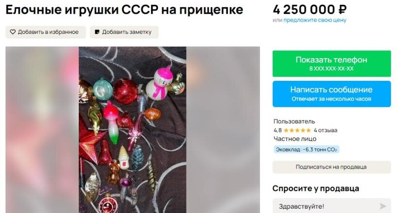 В Омске продают советские ёлочные игрушки за 4 миллиона рублей