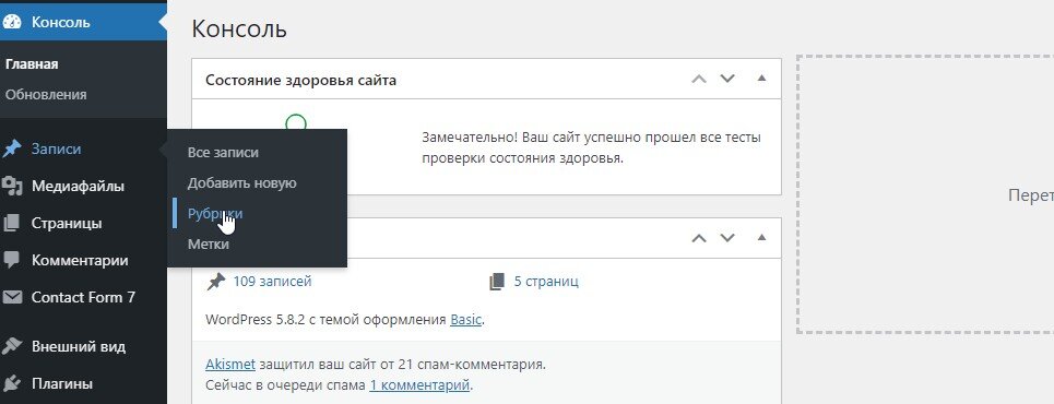 Рубрики Вордпресс. Классификация статей сайта