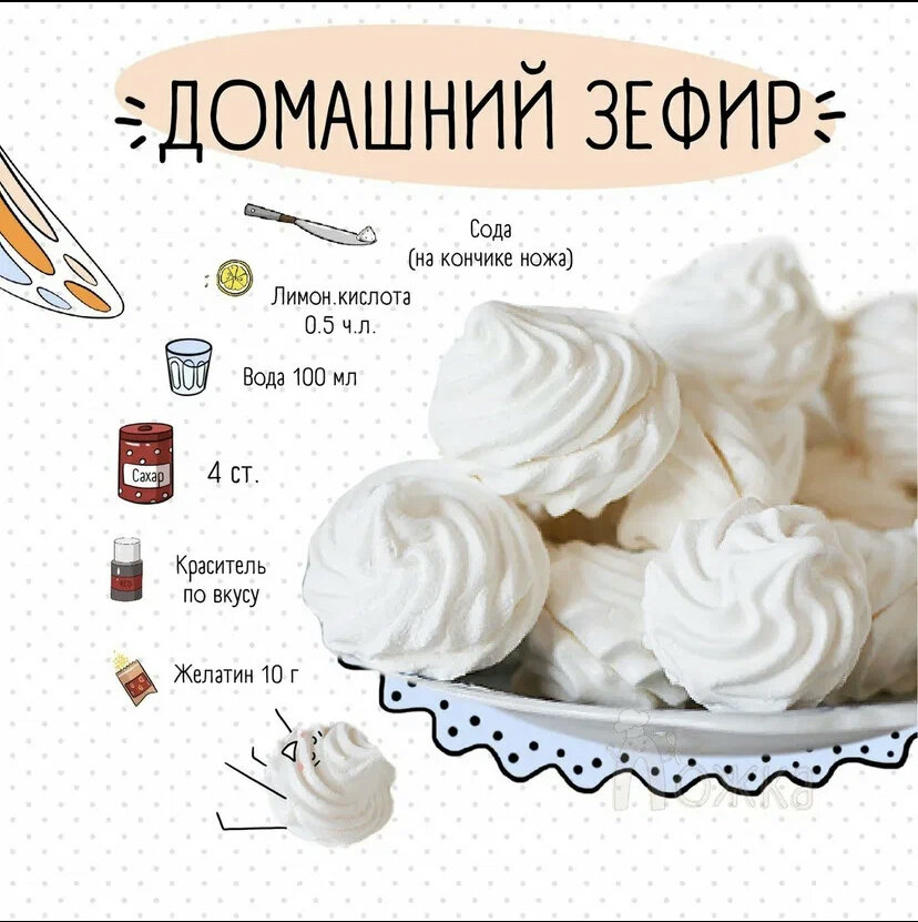 1. Чтобы желатин набух, замочим его в холодной воде (делаем это заранее). В кастрюлю насыпаем сахар, наливаем воды и доводим до кипения. Добавляем при желании пищевых красителей и ароматизаторов. Когда сироп закипит, варим три минуты и добавляем желатин. Снимаем с огня и хорошенько перемешиваем. Шаг 2 2. Минут пять миксером взбиваем еще горячую смесь. Затем минут пять смеси даем отдохнуть. Затем снова немного взбиваем. Шаг 3 3. Добавляем в смесь лимонной кислоты и соду. Минут десять взбиваем еще. Масса должна стать густой, а ее объем должен заметно увеличиться. Шаг 4 4. На силиконовую или стеклянную поверхность с помощью ложки или шприца выкладываем предварительно охлажденную массу, масса получается довольно липкой. Оставляем заготовки, при комнатной температуре, на целую ночь. Шаг 5 5. Утром половинки зефира снимаем и по две штучки склеиваем. Зефир готов.