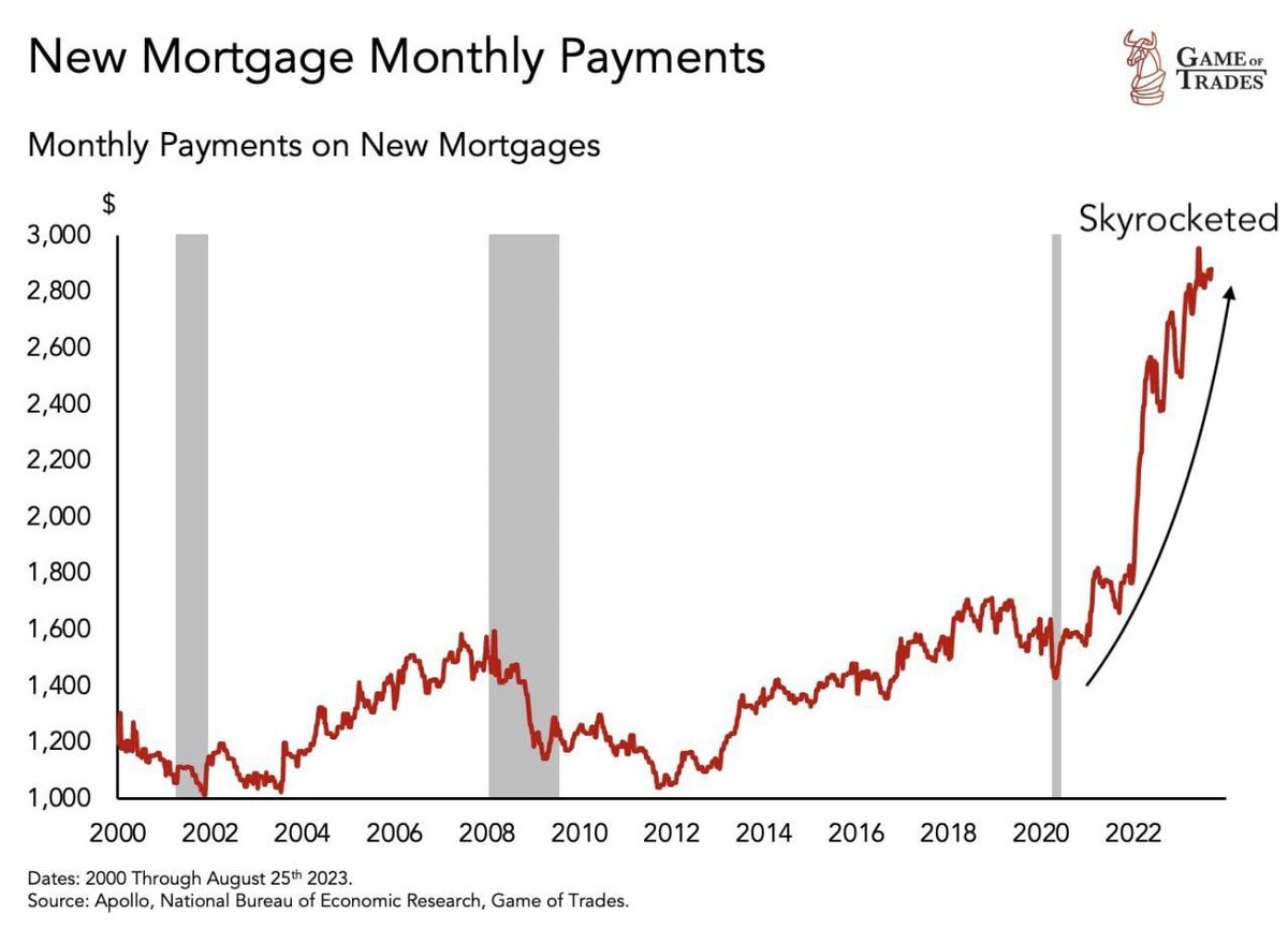 В США средний платеж по ипотеке взлетел почти до $3000 в месяц. Это рекордный уровень за всю историю наблюдений.