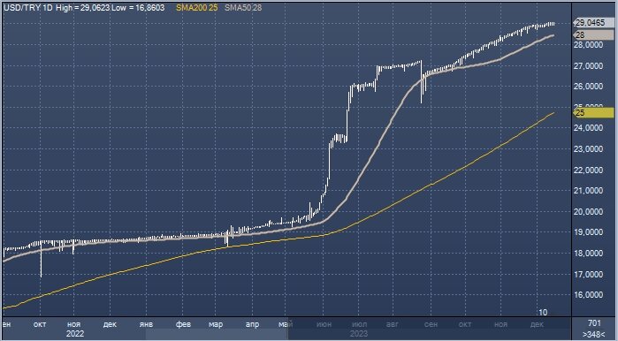 Турция повысила базовую ставку до 40% в ноябре. Следующее заседание ЦБ по вопросу ставок состоится 21 декабря.