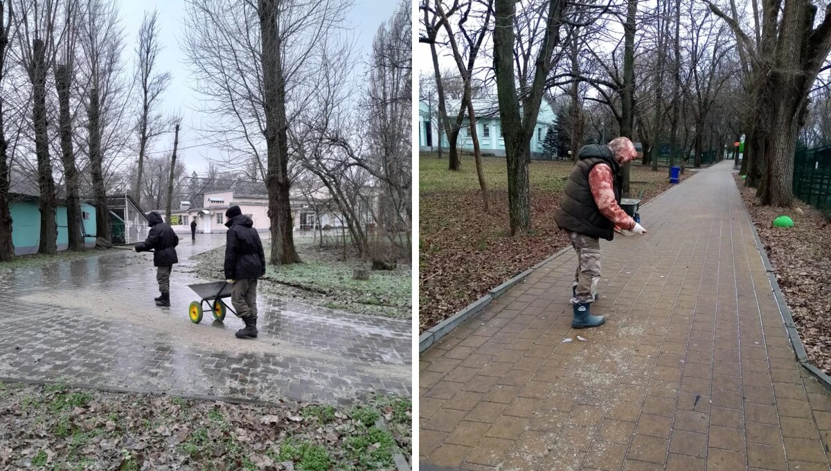 Территории парков в Ростове продолжают обрабатывать от наледи