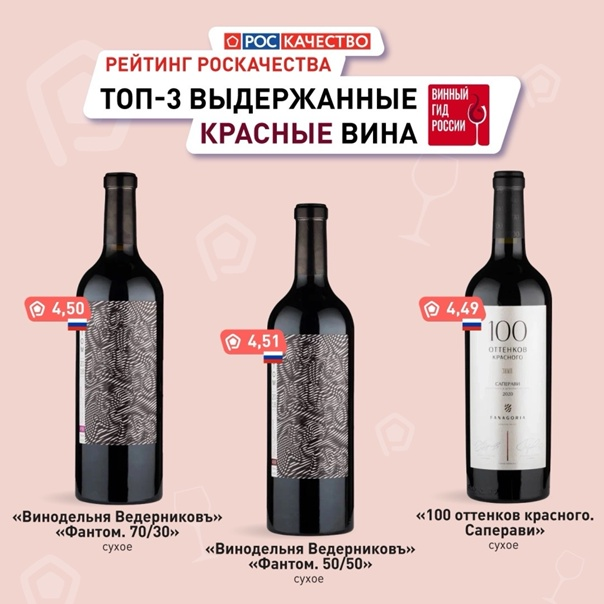 В рамках исследования "Винный гид России" Роскачество проверило весь спектр российских вин. От ординарных до выдержанных, от массовых до фермерских. В 2023 году принята система классификации вин в рейтинге не только по цвету (красные, белые, розовые) и типу (тихие, игристые, крепленые), но и по выдержке (ординарные, а также выдержанные и коллекционные) в соответствии с требованиями статьи 28 Федерального закона 468. Исследование этого года показало, что урожай 2022 года был по-настоящему выдающимся в целом ряде виноградарских регионов страны. Вслед за ростом интереса к белым винам отрасль предлагает все более качественные образцы российских вин в этом цвете. В категории выдержанных вин очень достойно показывают свой потенциал отечественные автохтонные сорта винограда. Красные вина. Это традиционно самая популярная категория в продажах всего российского вина. 193 образца красных вин было исследовано экспертами. Большую часть (свыше 85%) из них составили сухие вина. Красные ординарные в