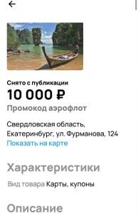 На сайтах частных объявлений начали появляться купоны «Аэрофлота», дающие 30-процентную скидку на перелёт из Екатеринбурга на Пхукет. Стоимость купона (промо-кода) варьируется от 10 до 25 тысяч рублей. Такие купоны «Аэрофлот» раздавал пассажирам, купившим билеты по ошибочным тарифам: популярное международное направление тогда продавалось всего по несколько тысяч рублей. Информация об аттракционе невиданной щедрости быстро распространилась по блогам и соцсетям, в итоге «халявные» билеты купили несколько тысяч человек. Некоторые даже купили отдельные билеты до Екатеринбурга из других городов. После обнаружения ошибки билеты аннулировали, деньги вернули, а также начислили по 5000 бонусных миль и те самые купоны на скидку. Очевидно, что продавцы купонов – это люди, готовые спонтанно лететь куда угодно, лишь бы дёшево, поэтому по рыночной цене даже со скидкой они покупать билеты не готовы. Некоторые пассажиры даже подали коллективный иск, в котором требуют от «Аэрофлота» выплатить им компен