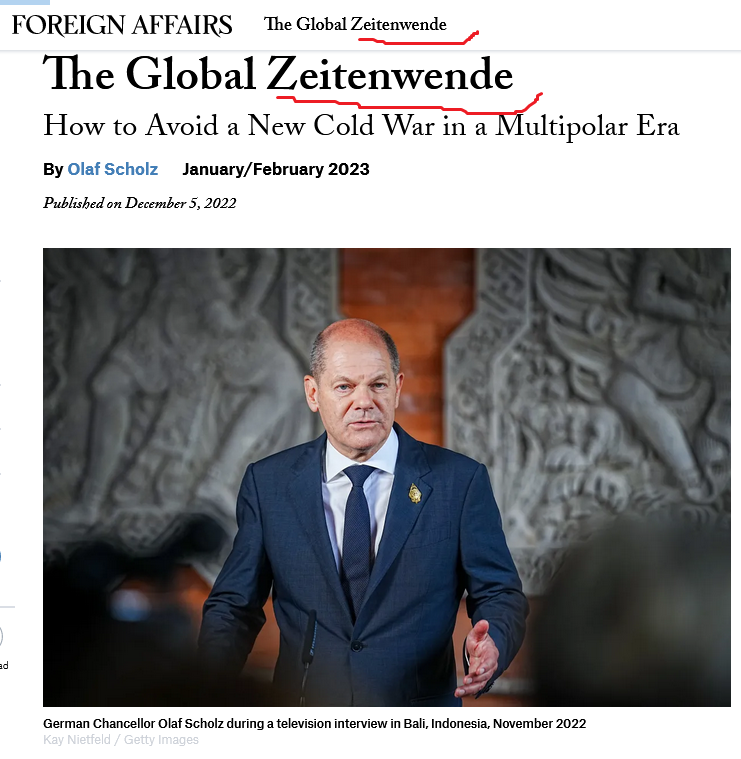 Если Украина победит, рассуждает Шольц, это действительно приведет к серьезным изменениям в международной системе, а формирование биполярного блока станет предвестником новой холодной войны, которую Шольц назвал "фаталистической" и которой следует избегать. Однако при этом игнорируется функция формирования блоков времен холодной войны, которая заключалась не только в том, чтобы предотвратить выход из-под контроля конфронтации между идеологически противоположными сверхдержавами, но и в том, чтобы демократии могли защитить и в конечном счете отвести от себя вполне реальную авторитарную угрозу.