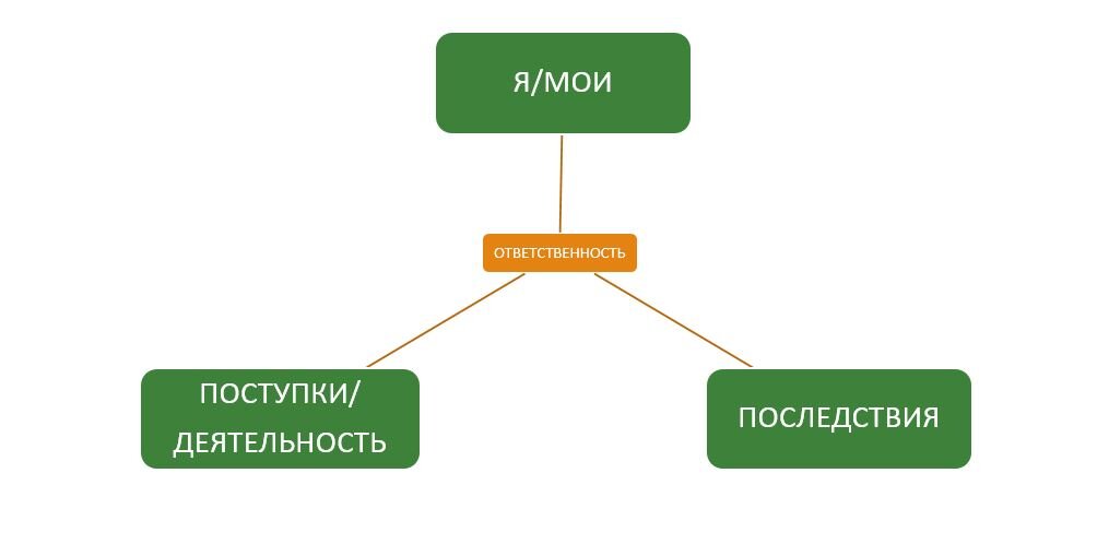 Если мы рассматриваем ответственность как «Я отвечаю за последствия своей деятельности», то ответственность графически можно представить следующим образом:
