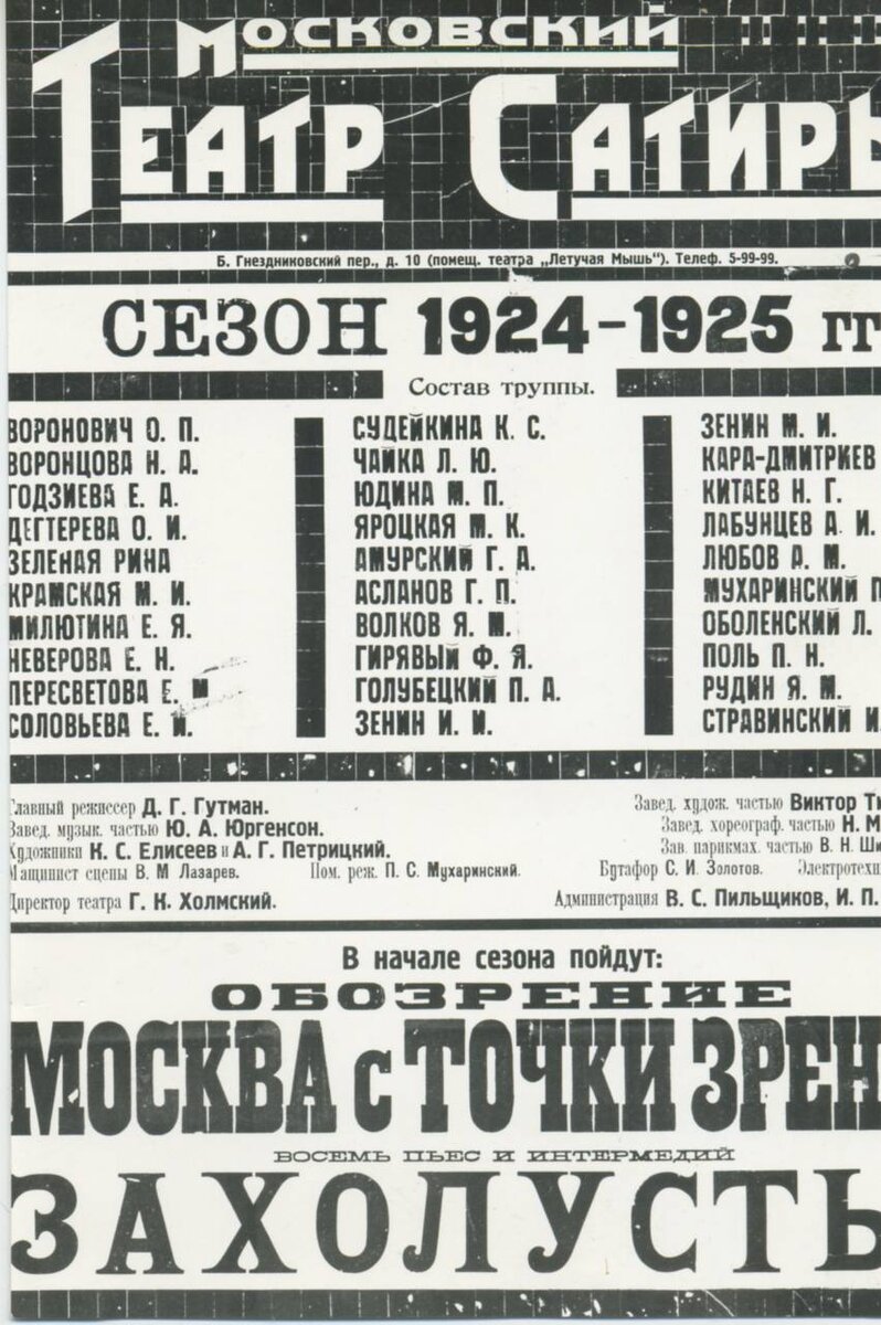 В небольшом подвальном помещении дома № 10 в Большом Гнездниковском переулке гремела премьера. Очень необычный, невиданный по меркам того времени спектакль-обозрение.