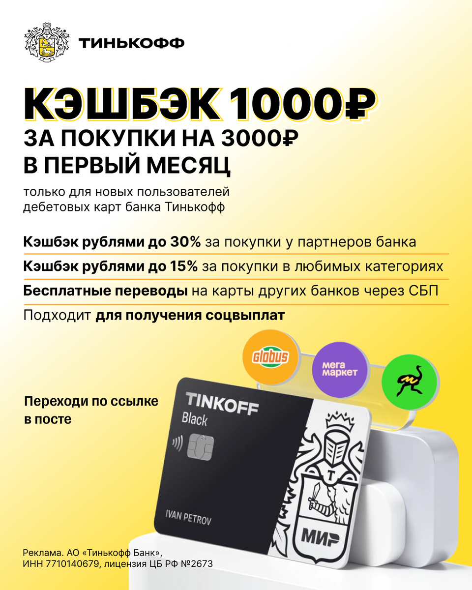 Реклама. АО «Тинькофф Банк», ИНН 7710140679, лицензия ЦБ РФ №2673