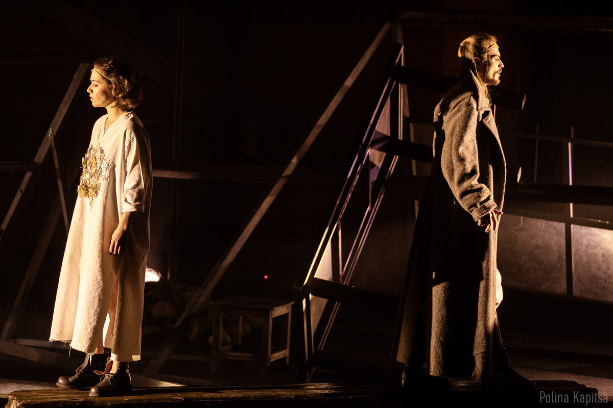 Режиссер предложила практически кинематографическое решение, разбив действие на эпизоды с главным героем и его воспоминаниями, связанными с теми, кто остался в тылу. И сей женский ансамбль артисток разных возрастов и разных темпераментов задавал человеческое измерение нечеловеческой истории. Поэтому и можно назвать первое действие «женским».