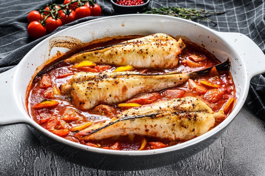 ПРЕДСТАВЛЯЕМ ВАМ ИСПАНСКИЙ РЕЦЕПТ, ГЛАВНОЙ ЗВЕЗДОЙ КОТОРОГО ЯВЛЯЕТСЯ ТУНЕЦ В ТОМАТНОМ СОУСЕ. Лучшие блюда чертовски просты, и этот рецепт, звездой которого является тунец в томатном соусе , тому подтверждение. Местные жители называют его «Атун кон томате». Это настоящее фирменное блюдо: кусочки тунца, сваренные в томатном соусе, почти тают во рту. Важно использовать свежую рыбу и качественные овощи. Даже в холодные зимние дни тунец вызовет на вашей тарелке летнее настроение. Тунец в томатном соусе Ингредиенты 900 г свежего тунца (без кожи и костей) 900 г свежих помидоров 125 мл оливкового масла 3 столовые ложки свеженарезанной петрушки 3 зубчика чеснока свежая паприка лук ½ чайной ложки сахара соль и перец инструкции В блендере смешайте 60 мл масла с зубчиком чеснока и измельченной петрушкой. Перемешивайте, пока ингредиенты не смешаются. В большую кастрюлю налейте оставшееся масло, обжарьте на нем нарезанный лук и перец. Жарьте при умеренной температуре, пока овощи не станут золот