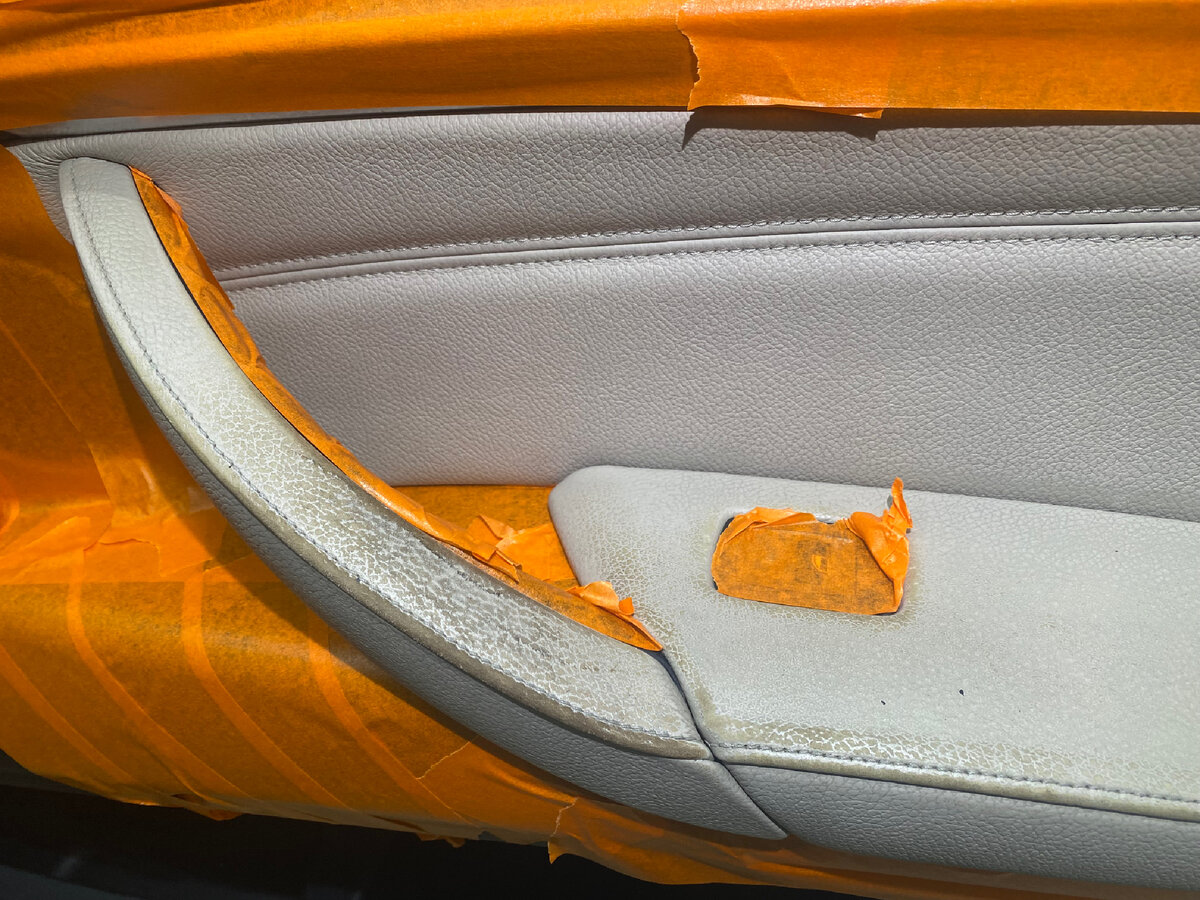 Почему-то чаще всего в реставрации салона нуждаются две марки автомобилей: BMW и Range Rover. На моем опыте было уже несколько BMW X5 у которых нужно было красить все ручки дверей, передние сидения и конечно же центральный подлокотник . И так чтобы все это восстановить нам нужно соблюсти эти этапы : 1. Очищение всей окрашиваемой кожи, скорее всего даже не один раз. 2. Обезжиривание в несколько раз. 3. Зашкуриваем всю кожу, которую собираемся красить. Места трещин заполняем жидкой шпаклевкой. Она отлично заполняет мелкие трещинки на коже. 4. На центральном подлокотнике есть большая протертость, кожа впитала в себя жир и грязь. Пытаемся максимально обезжирить этот участок, если этого не сделать, то краска быстро сотрется с этого места. Можно использовать специальное средство, которое вытягивает жир из кожи. 5. Более менее выровняв поверхность кожи, убираем с нее пыль после зашкуривания. 6. Подбираем краску. Я это делала по заднему дивану. 7. Наносим базу для кожи с отвердителем в дв