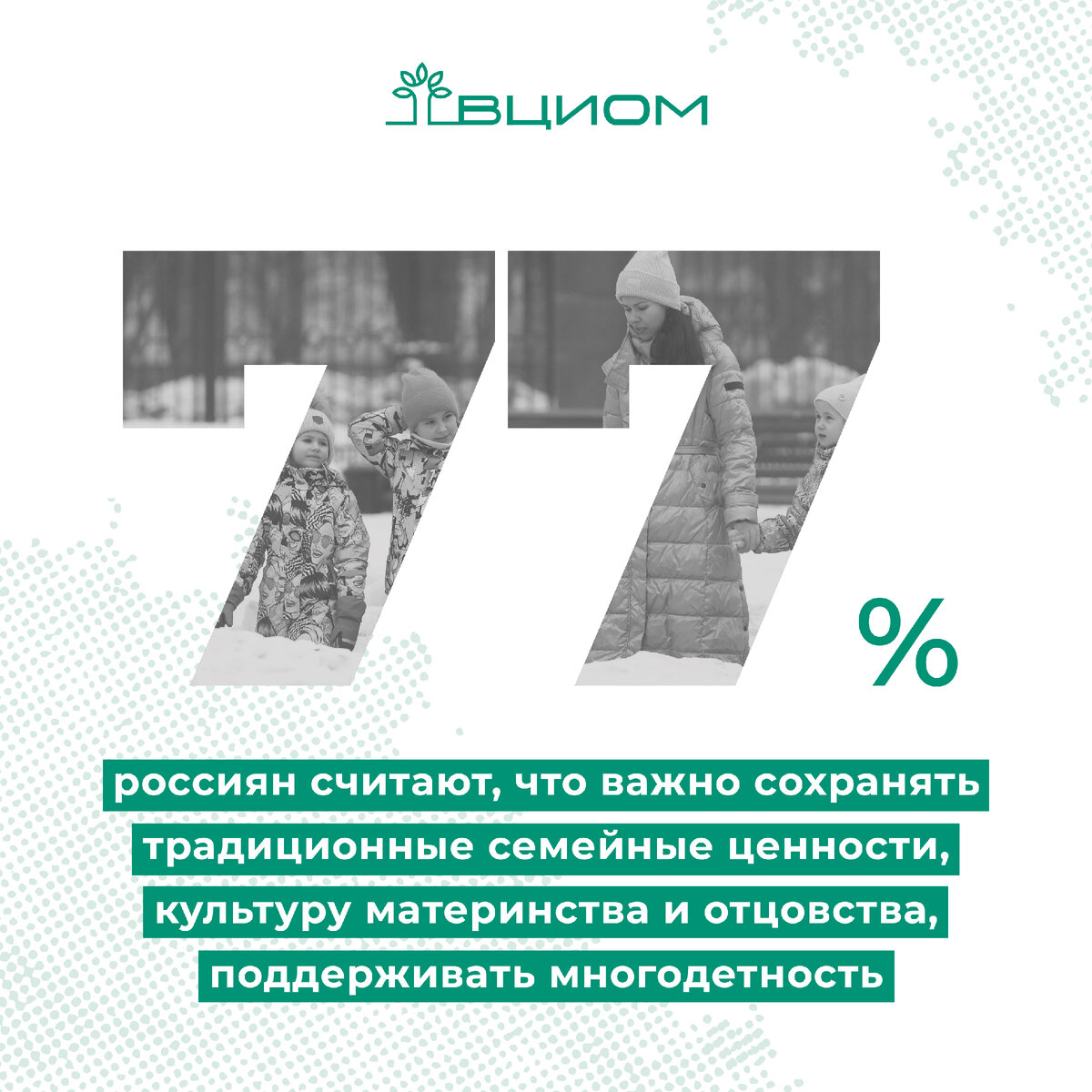Большая часть наших сограждан считают, что важно сохранять традиционные семейные ценности, культуру материнства и отцовства, поддерживать многодетность (77%). Не считают необходимым держаться за традиционные семейные ценности 16% россиян.