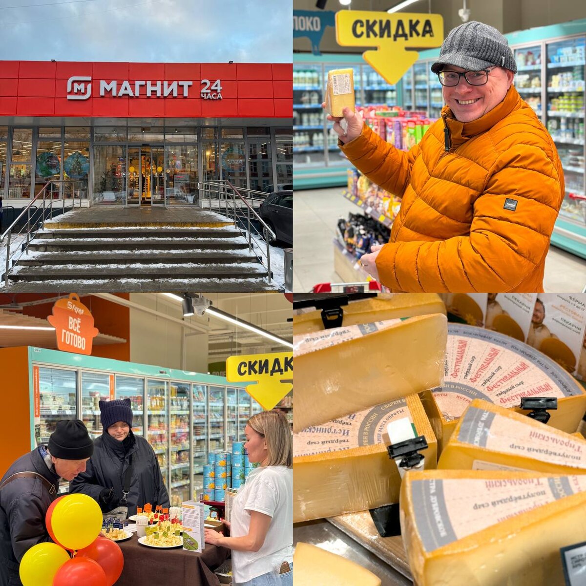 Друзья! Ух-х, невероятно, но факт! Наша продукция появилась в Магните! Пока только на Москву и область, но для нас это шаг вперед. Пишу и сам не верю! Еще пару лет назад это казалось для нас неподъемным и чем-то нереальным. В ближайшее дни (может быть уже завтра, как развезут) наш сыр, йогурты, молоко и ряженку можно будет купить в 600-х магазинах Московского региона. Сыр идет сразу же фасованный в вакууме по 150 грамм. Пока в продаже будет: полутвердые — "Губернаторский", "Красногорский", "Пошехонский", а из твердых — "Истринский" и "Фестивальный". Также наши сыры на развес с большими скидками и молочку можно купить в гипермаркете Магнит по адресу: м. Академика Янгеля, ул. Кировоградская д. 42 (мы там проводили дегустацию). Почему Магнит? Все просто. Эта федеральная сеть взяла курс на сотрудничество уже с 75 фермерами. У компании есть облегченный фермерский договор на пяти листах по которому мы заключились. Для фермеров есть даже специальные сотрудники, которые нас прямо соп