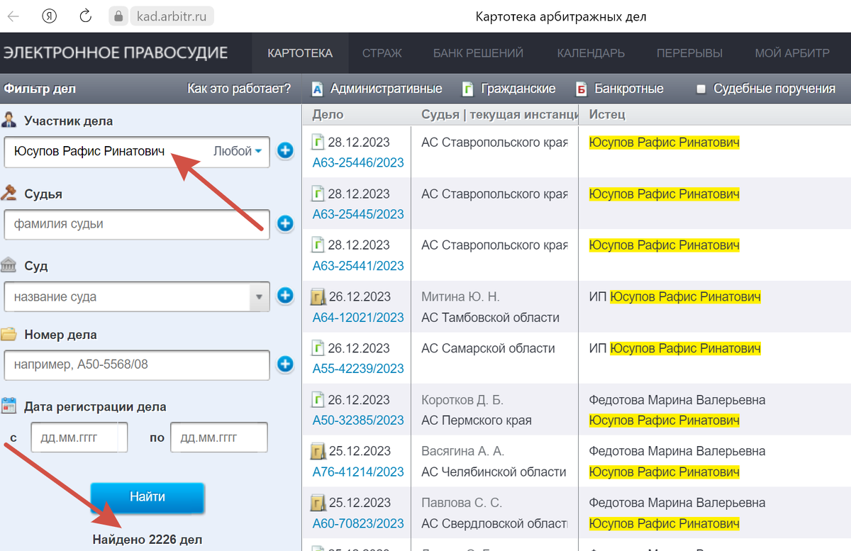 Как видим, на декабрь 2023 г. подано более 2 000 исков.
