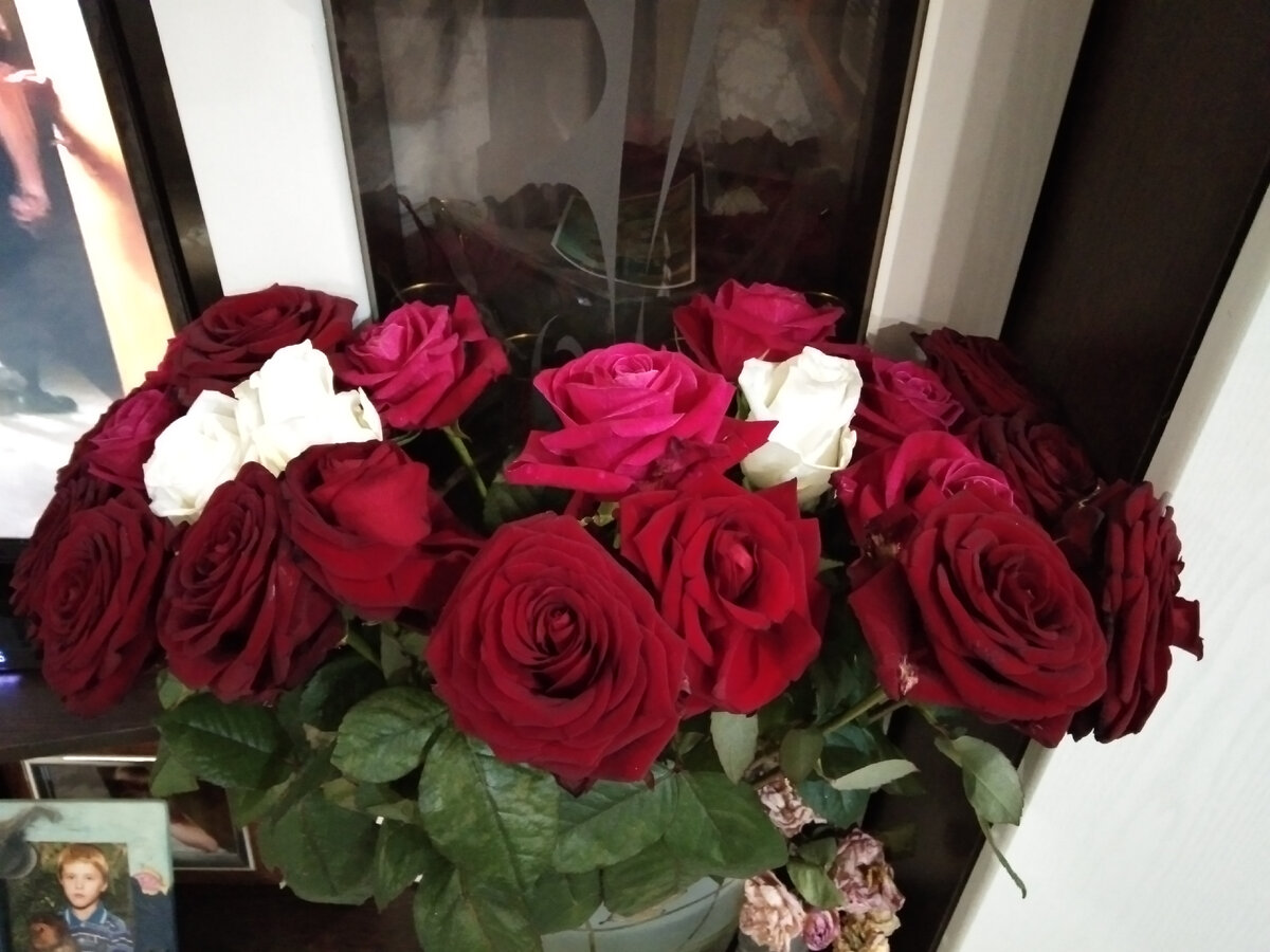А приехал сын с огромным букетом роз для любимой мамочки!